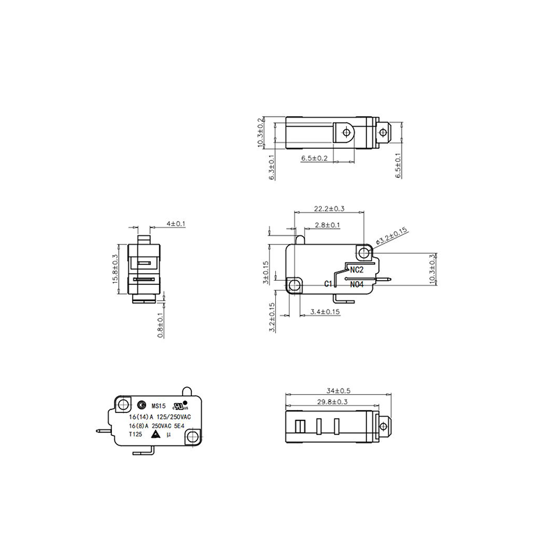 - ขนาดและการติดตั้ง: ไมโครสวิตช์ come in various sizes; select one that fits within the constraints of your wiring design.