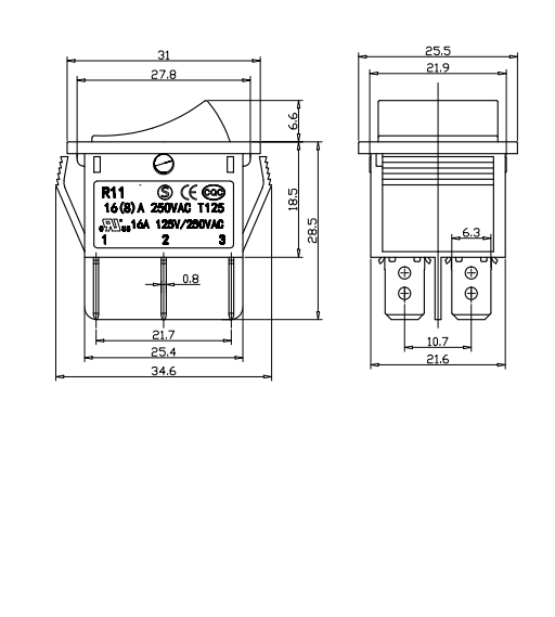 3. คำอธิบายผลิตภัณฑ์: ซีรีส์ R11-8 เป็นสวิตช์โยกมาตรฐานหรือที่เรียกว่าสวิตช์สลับหรือสวิตช์คลื่น มีให้เลือกหลายสไตล์ รวมถึงตัวเลือกที่มีฝาครอบป้องกันเพื่อกันฝุ่นและน้ำ หรือโครงสร้างป้องกันฝุ่นภายในเพื่อการป้องกันที่คล้ายคลึงกัน ใช้งานได้หลากหลายอย่างยิ่ง โดยมีการใช้กันอย่างแพร่หลายในเครื่องมือไฟฟ้า เครื่องมือทำสวน และอุปกรณ์ทำความสะอาดต่างๆ เช่น เลื่อยโต๊ะ เครื่องบดแบบตั้งโต๊ะ เครื่องตัดหญ้าไฟฟ้า เครื่องย่อยกิ่งไม้ เครื่องฉีดน้ำแรงดันสูง เครื่องดูดฝุ่นแบบเปียก/แห้ง และเหมาะสำหรับเครื่องใช้ในครัวเรือน เครื่องมือ และอุปกรณ์สำนักงานอย่างเท่าเทียมกัน